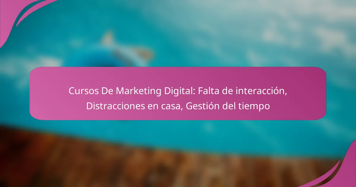 Los cursos de marketing digital presentan varios desafíos que pueden afectar la experiencia de aprendizaje. Entre los más destacados se encuentran la falta de interacción, las distracciones en el hogar y la gestión del tiempo, factores que pueden dificultar la asimilación de los contenidos.